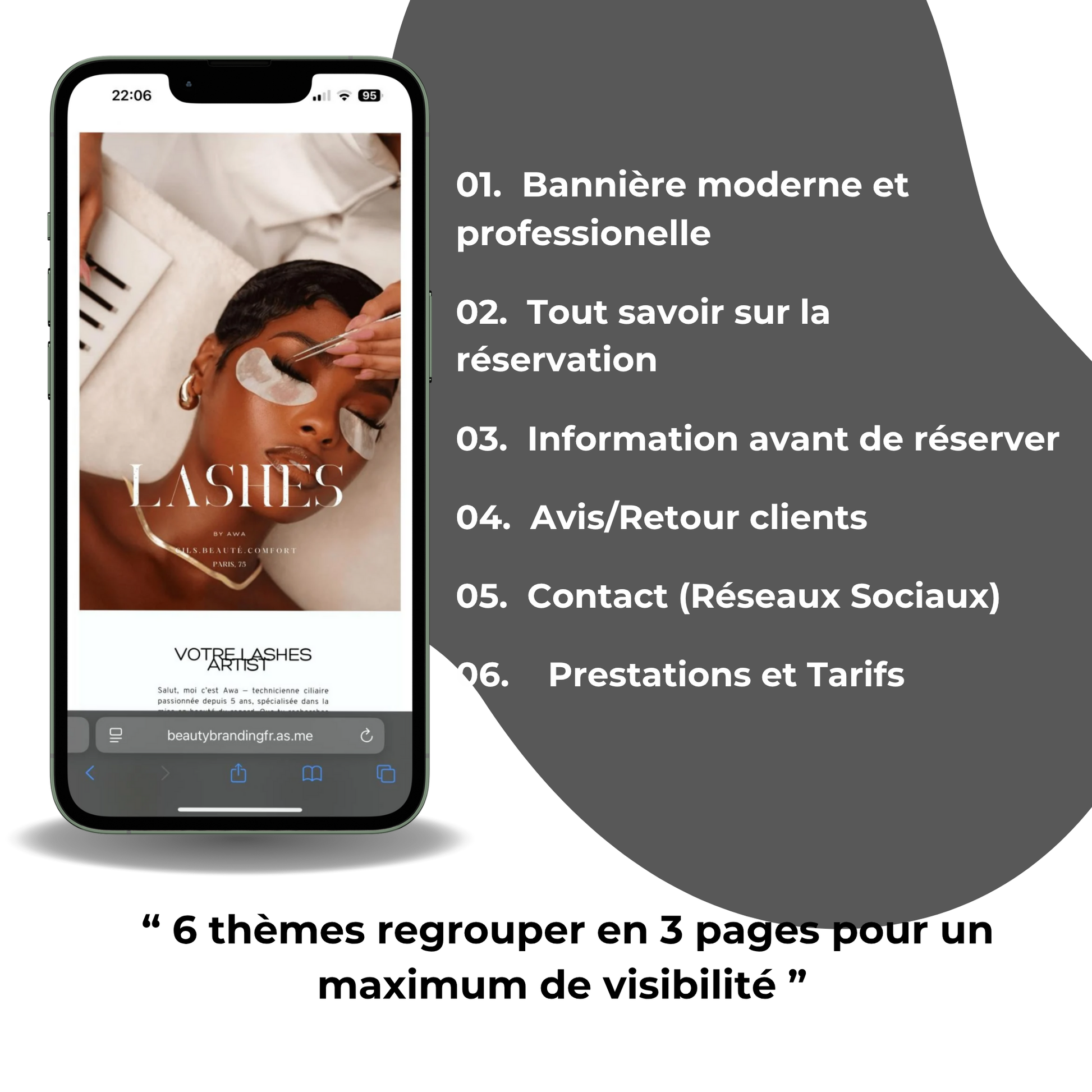 Ce modèle est conçu pour les beauty entrepreneurs souhaitant personnaliser leur page Acuity avec élégance et professionnalisme. Grâce aux créations Beauty Branding, offrez à vos clientes un aperçu exclusif de votre expertise tout en affirmant votre identité visuelle. Idéal pour se démarquer et marquer les esprits