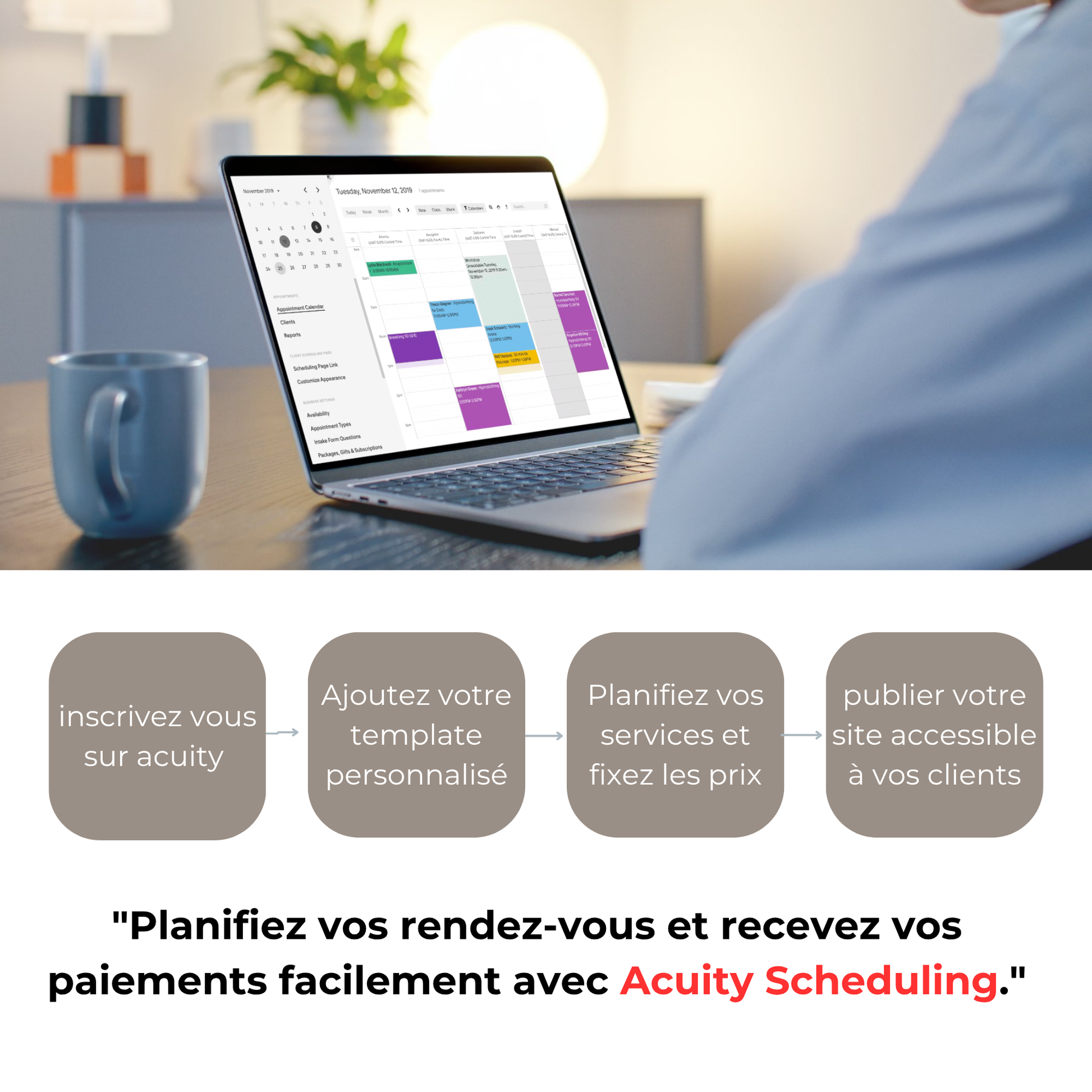 ✔️ Prise de rendez-vous et paiement simplifié, grâce à Acuity Scheduling