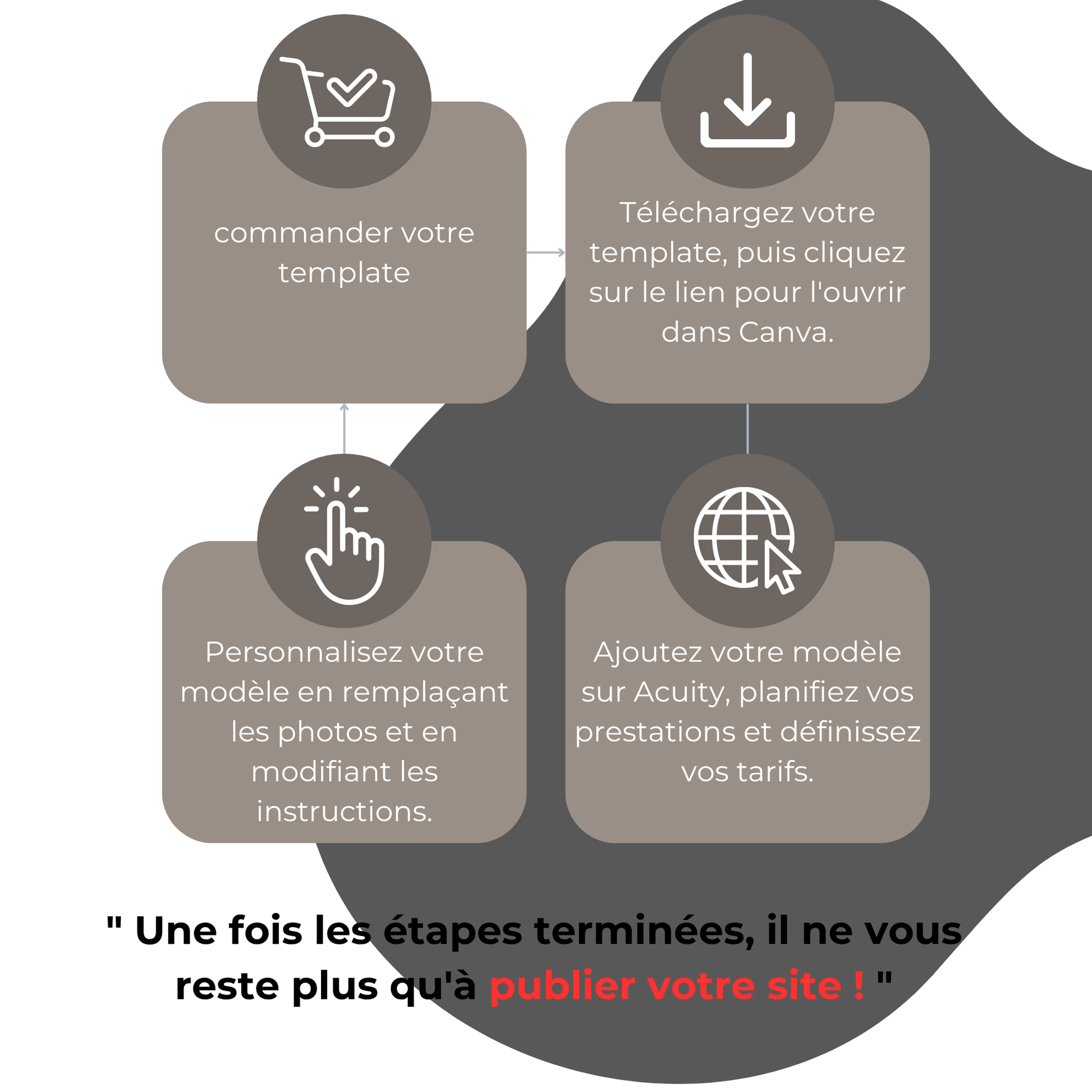 Des tutoriels sont inclus pour vous guider dans la modification de votre template et son intégration sur la plateforme Acuity.